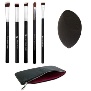 Includes 3 mini Kabuki Makeup Brushes, 1 pro Concealer Makeup Brush, 1 pro Flat Definer Makeup Brush, 1 Black Contouring Makeup Sponge, and 1 Makeup Brush Case.